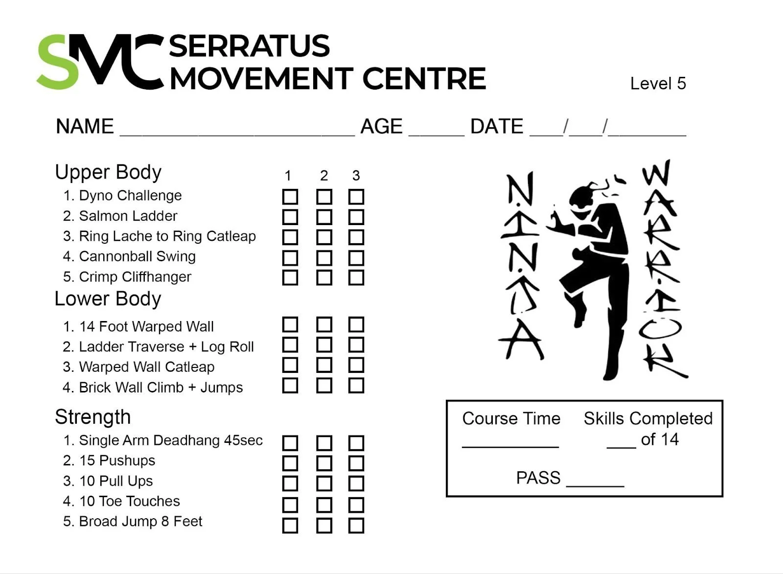 The Full Year Band Level classes will run from September to June, and they will guide students through 5 increasingly difficult levels of Ninja Warrior training.